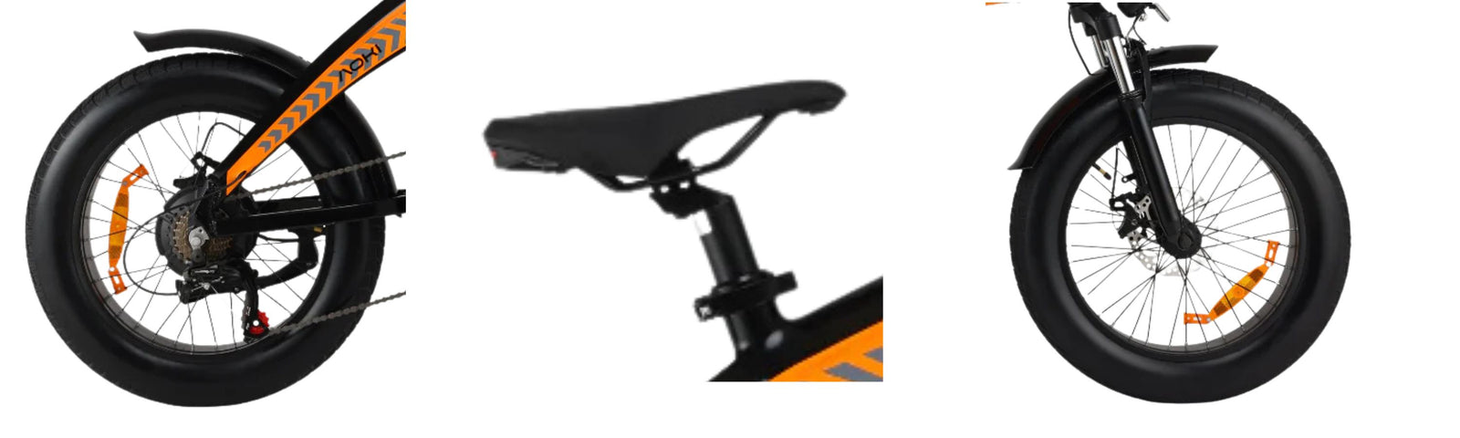 The 20″ wheels with 4″ tyres give extra stability over rough patches and uneven pavements. The saddle is cushioned enough for everyday use without causing fatigue.