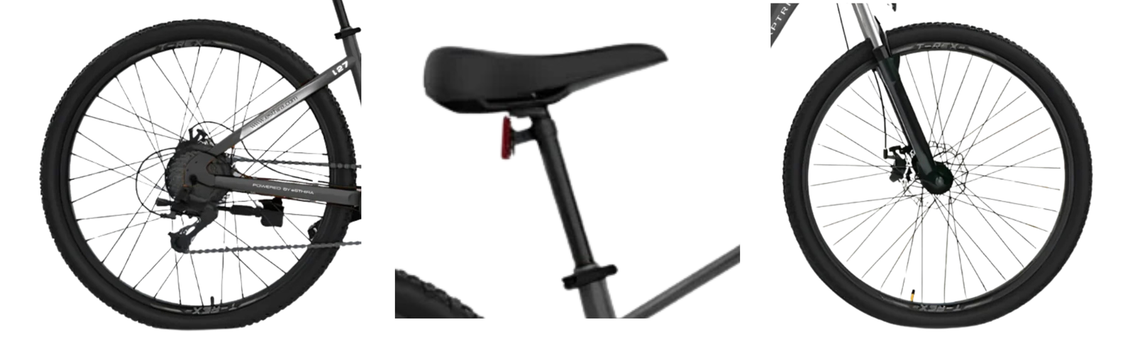 27.5-inch wheels roll smoothly over obstacles. Wide tires improve grip and balance. Saddle offers ample support. Wheel setup suits city roads. Stability remains consistent during rides.