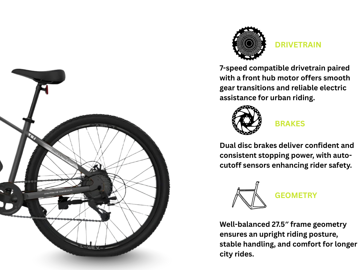 - 26” – Ideal for City Roads and basic Off-Roads - 27.5” – For City Roads and Off-Roads - 29” – For Off-Roads and Downhill Riding